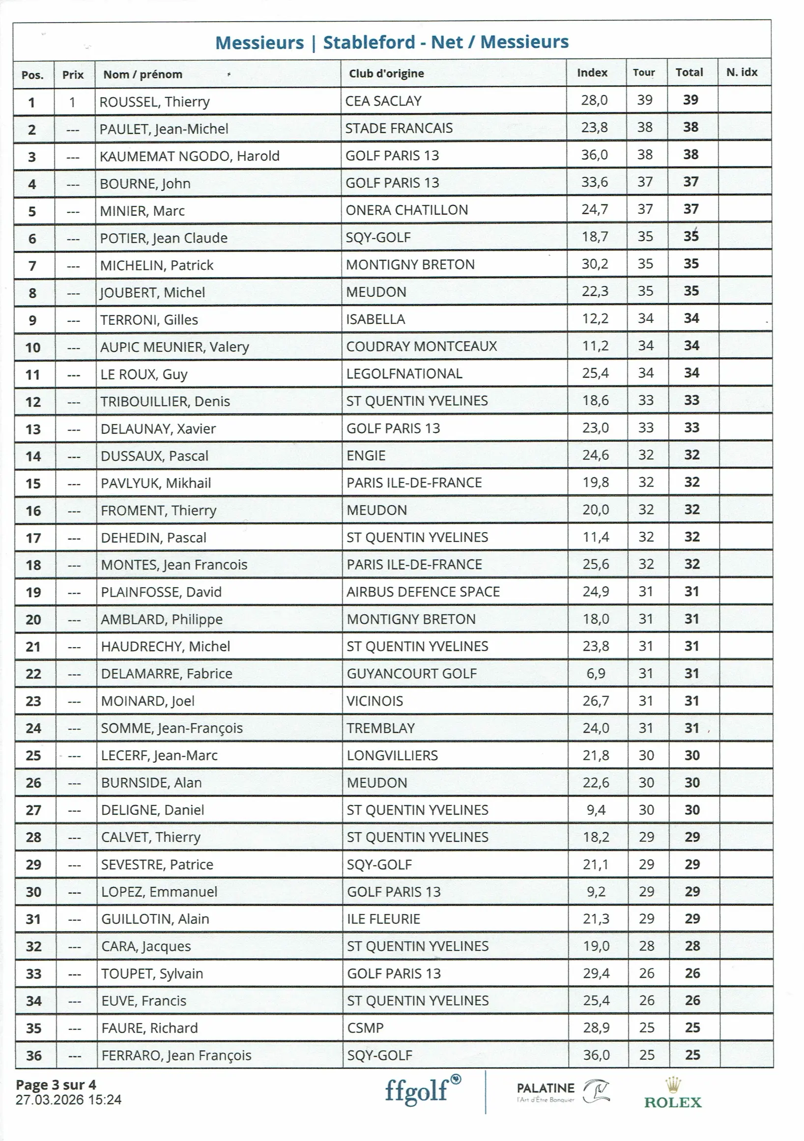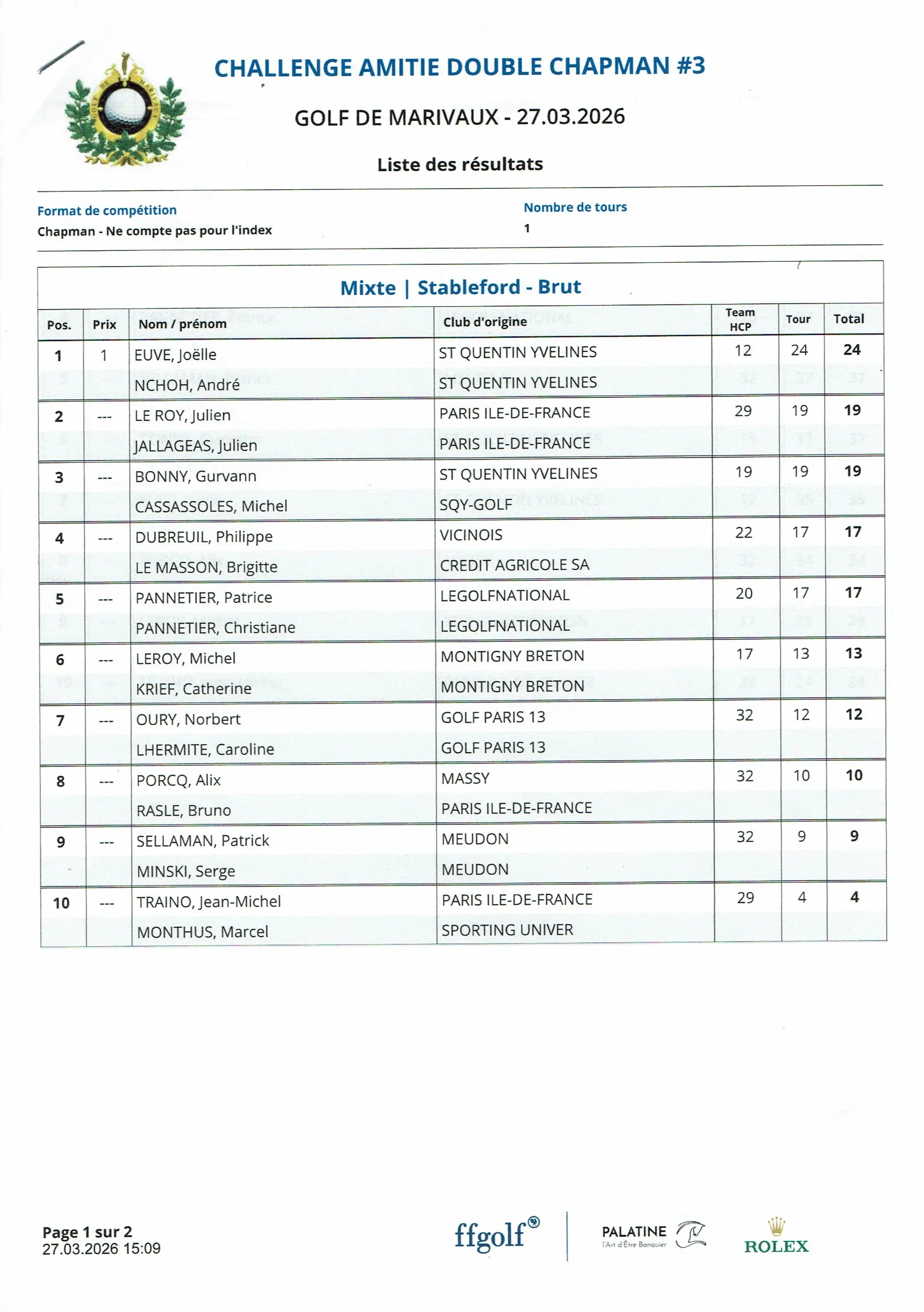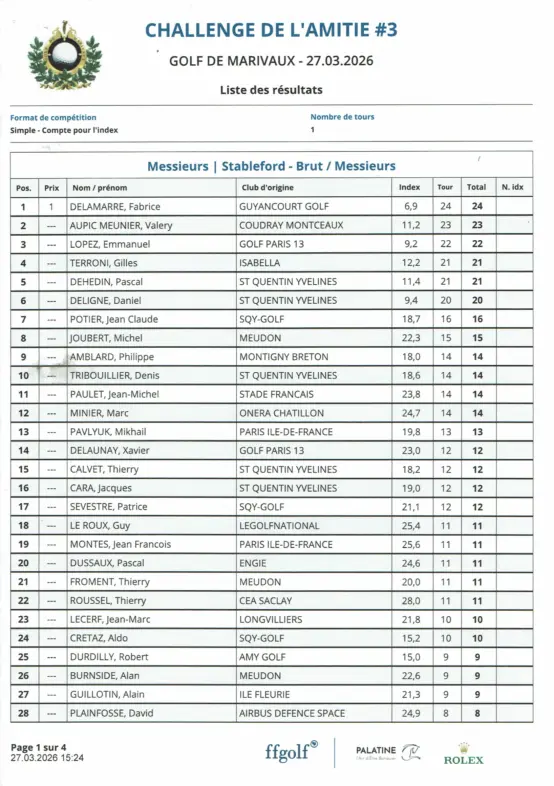 Tour 3 : mars 2026 – Golf de - Châteaufort
