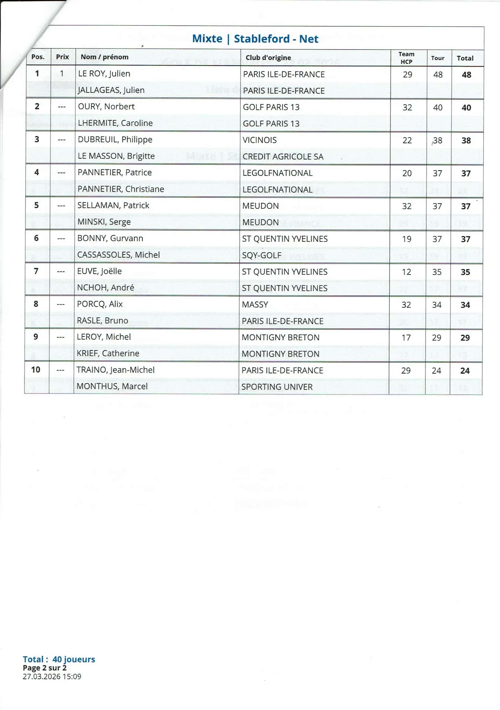 Tour 2 : octobre 2025 – Golf de – Paris Golf 13