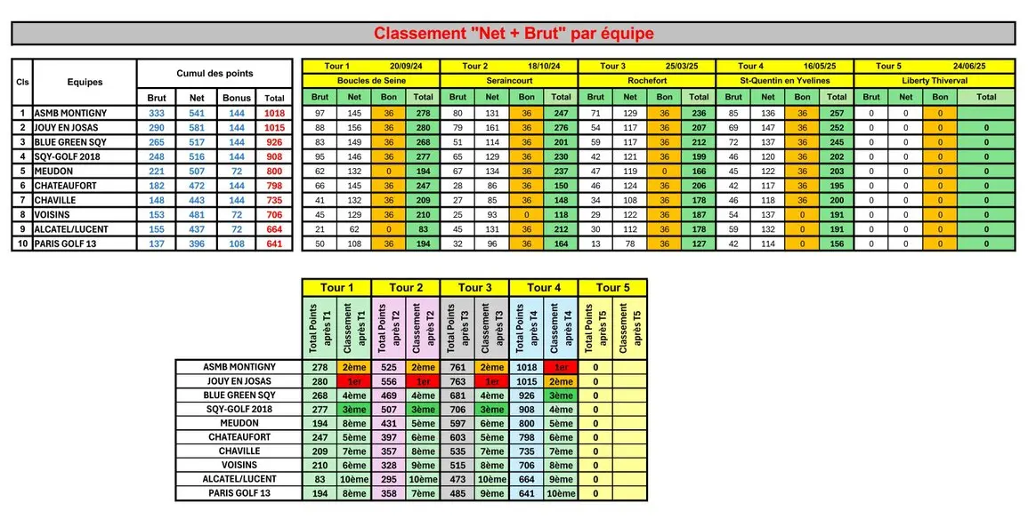 Résultats de la compétition tour N°1 golf des Boucles de Seine