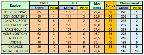 Résultats de la compétition du 18/09/2023 au golf de Maintenon