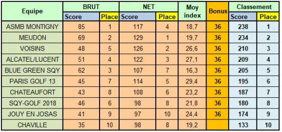 • Lieu : Golf de Rochefort • Lieu : Golf de St Quentin en Yvelines / Parcours Bleu