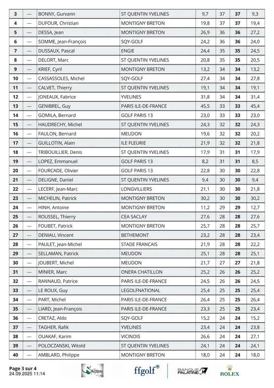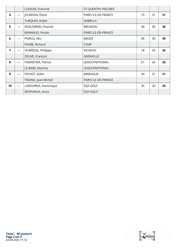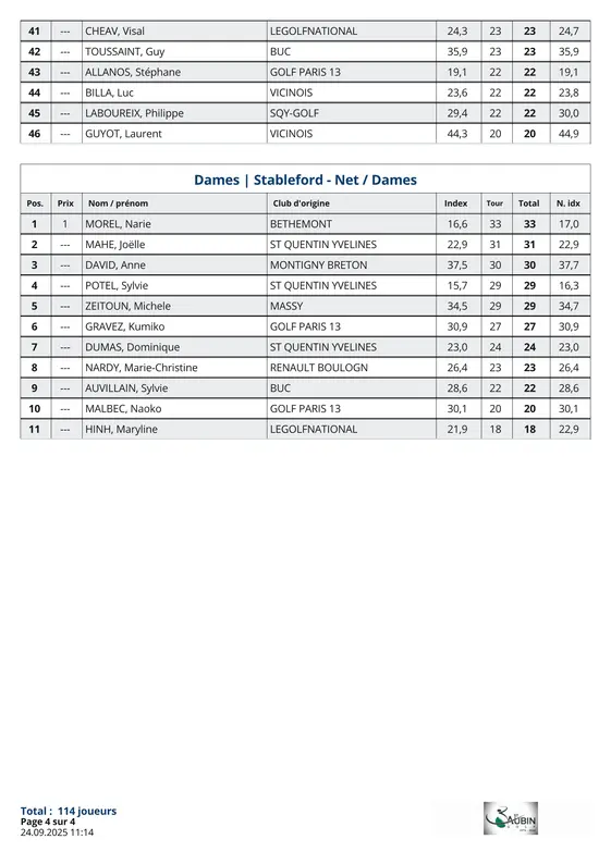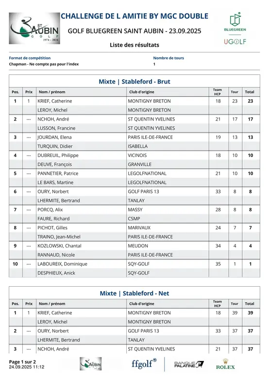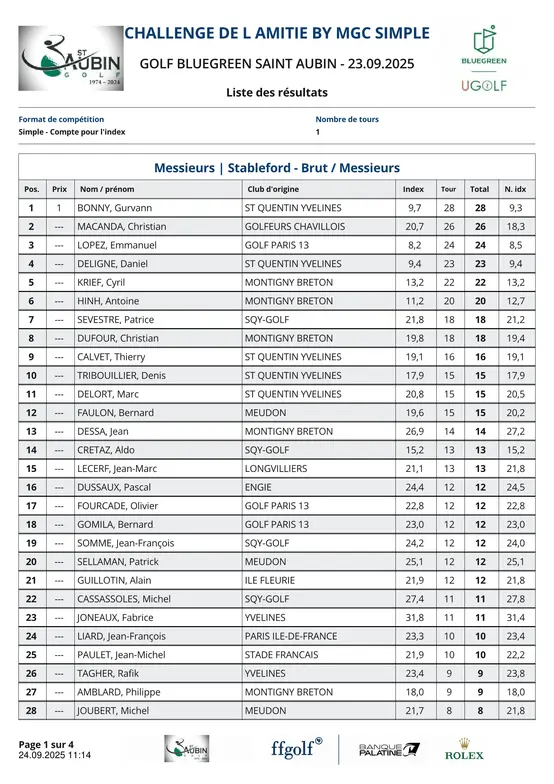 Tour 1 : 23 septembre 2025 – Golf de St Aubin - Meudon