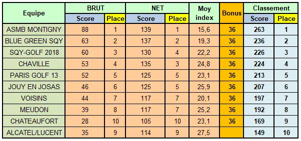 • Lieu : Golf de Rochefort • Lieu : Golf de St Quentin en Yvelines / Parcours Bleu