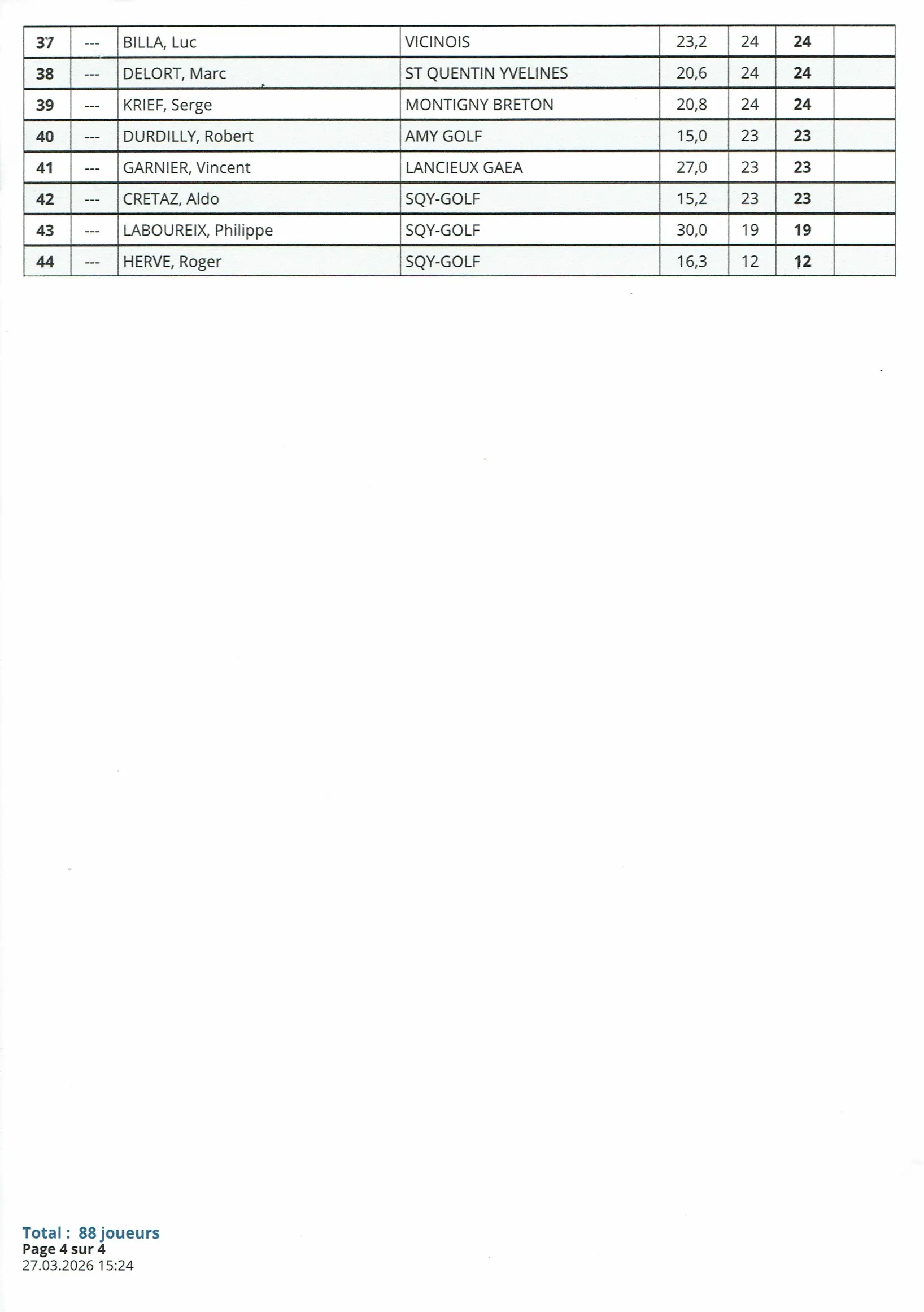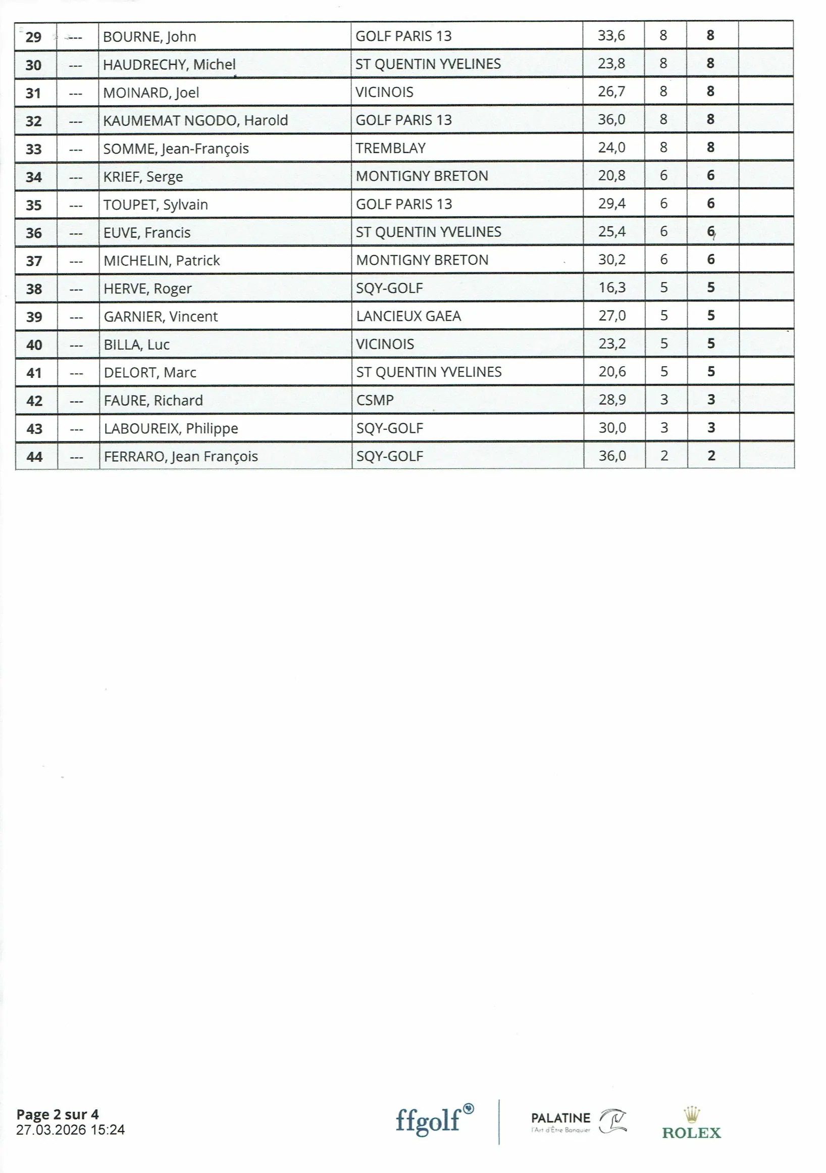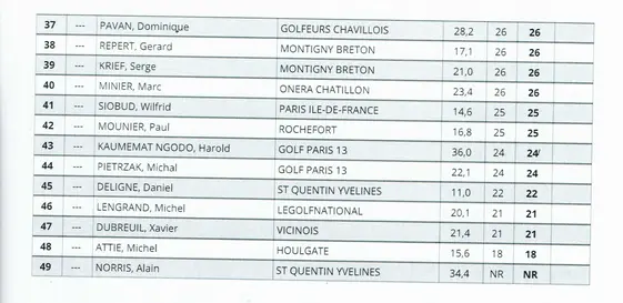 Résultats de la compétition tour N°4 golf de St Quentin en Yvelines