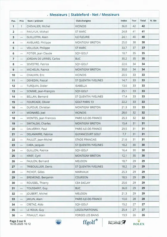 Résultats de la compétition tour N°3 golf de Rochefort