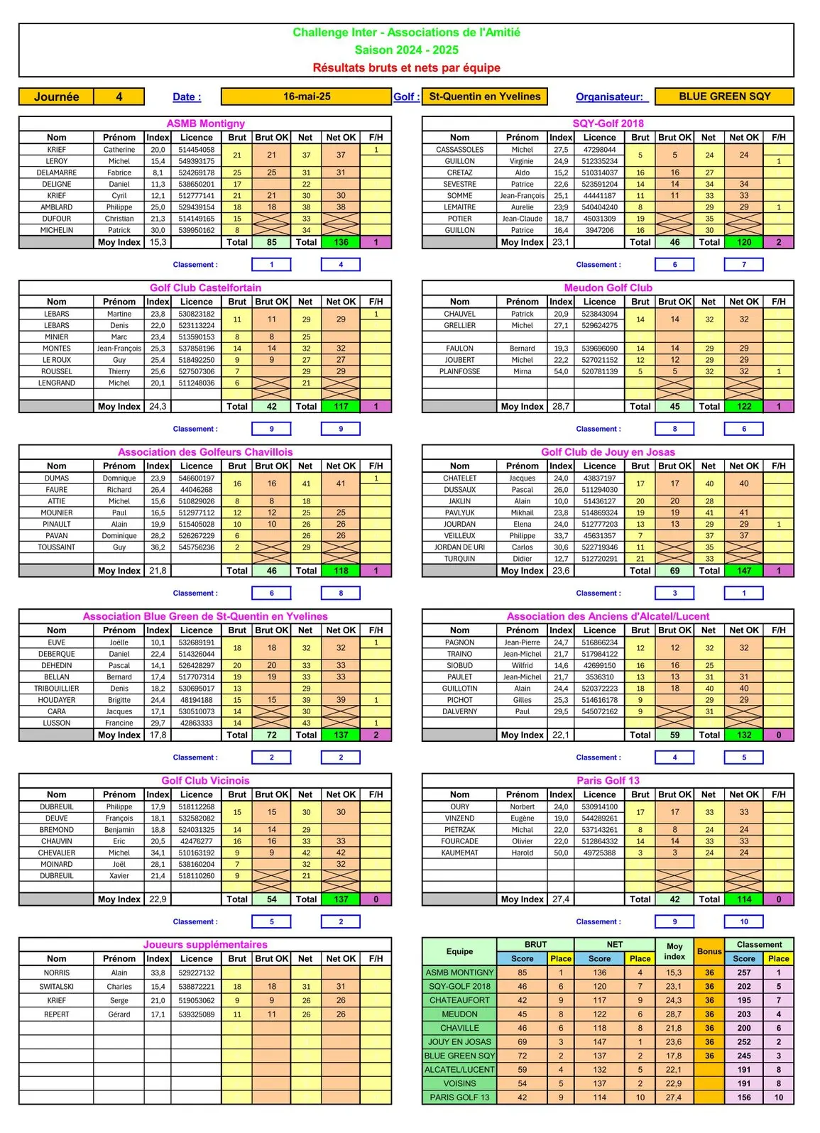 Tour 4 : 16 mai 2025 - Golf de St Quentin en Yvelines- AS BG