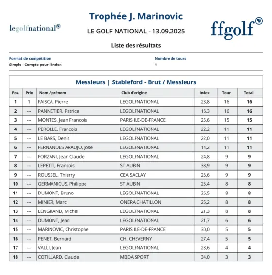 Pour ceux qui ont participé à la compétition, vous trouverez ci-après les résultats de vos exploits.